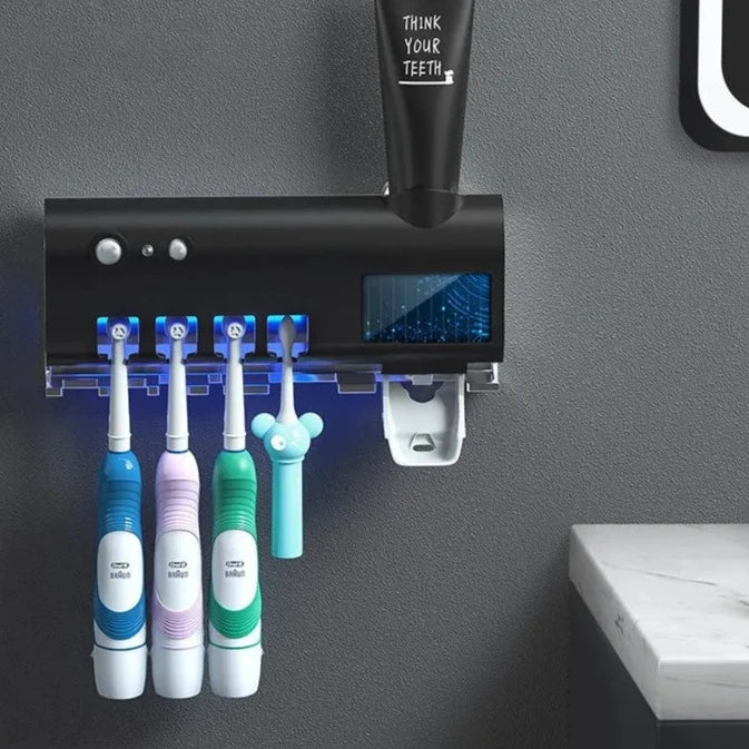 - Automatic Toothpaste Dispenser: Dispenses the perfect amount of toothpaste with a simple press, eliminating waste and mess.
